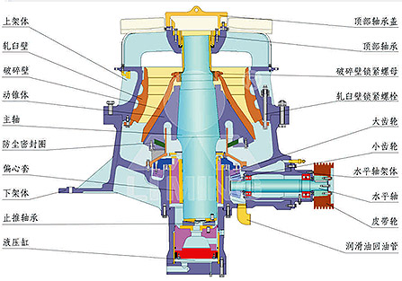 HST單缸液壓圓錐破碎機主要由上架體、中架體(中碎型)、下架體、動錐部、偏心套部、